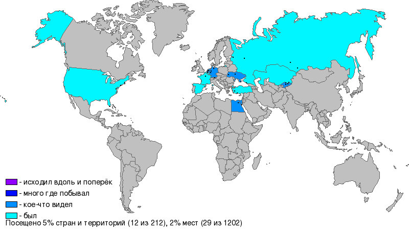 Carte des pays visités par l'utilisateur n°13986