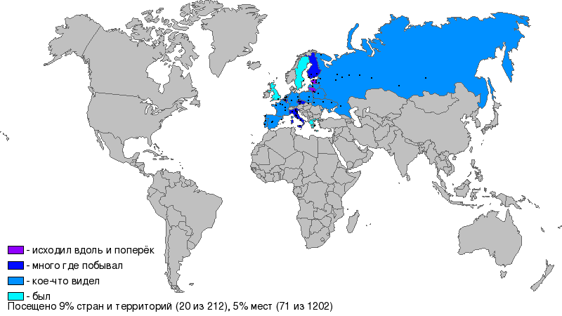 - Список посещённых точек и стран