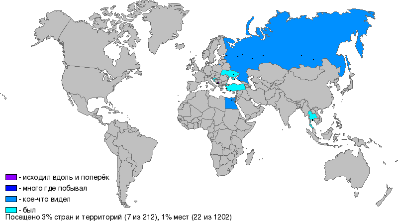 - Список посещённых точек и стран